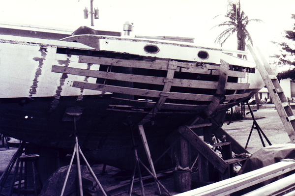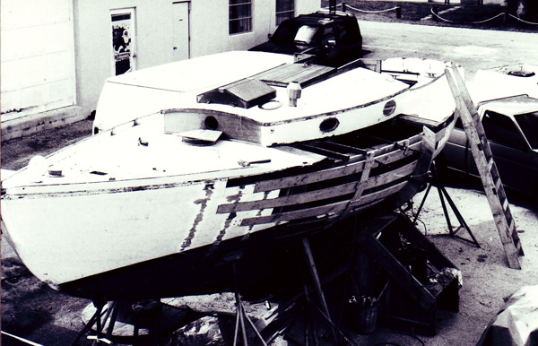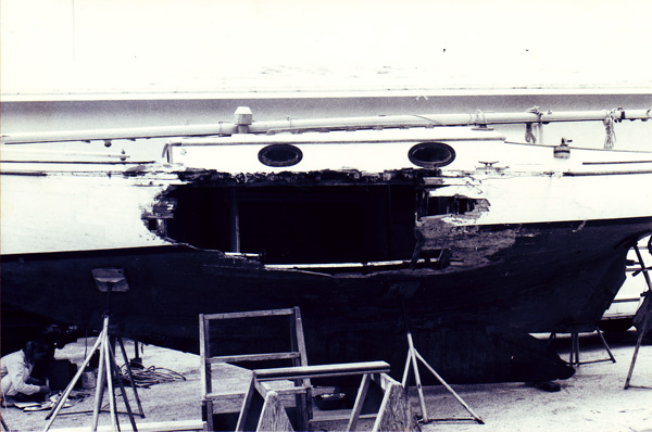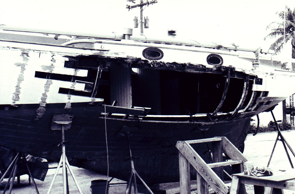 ![]() The deck repaired; When we originally restored IMAGINE in 1981 we laid plywood decks covered with Xynole-polyester fabric and epoxy for strength, water-proof qualities and low maintenance |
