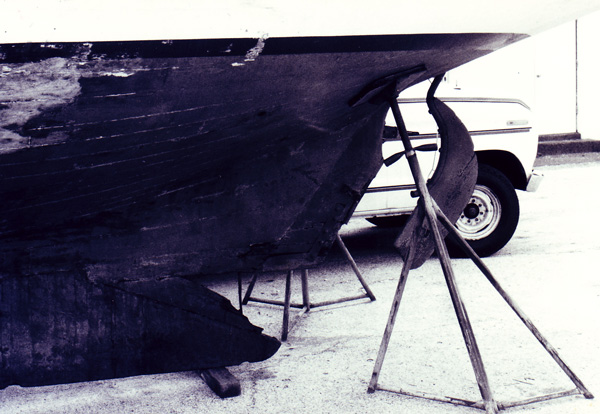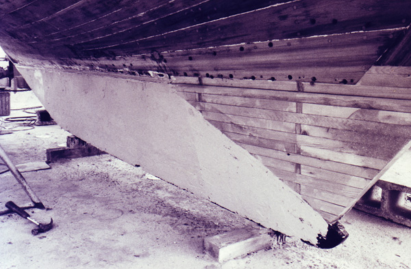 ![]() The gap aft of the lead ballast keel cleaned up and ready for laminating new deadwood (pieces) |