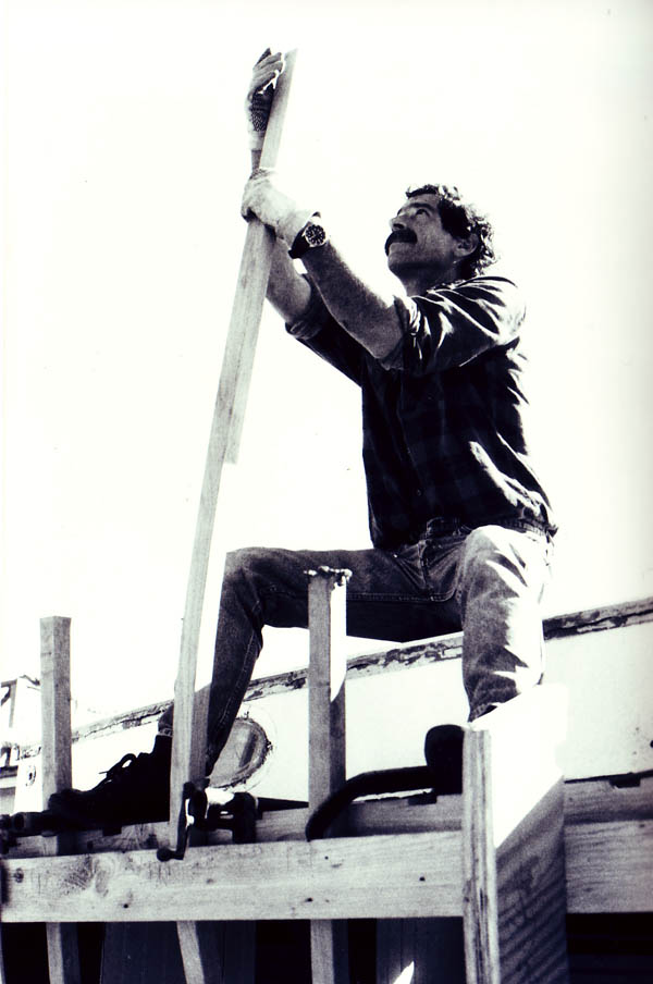 ![]() IMAGINE has been moved inside for painting; Bob Tillotson to the right |