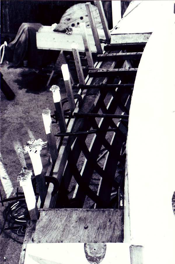 ![]() Sliding hot frames into place using the new planks for correct shape & location (Bill Smith) |