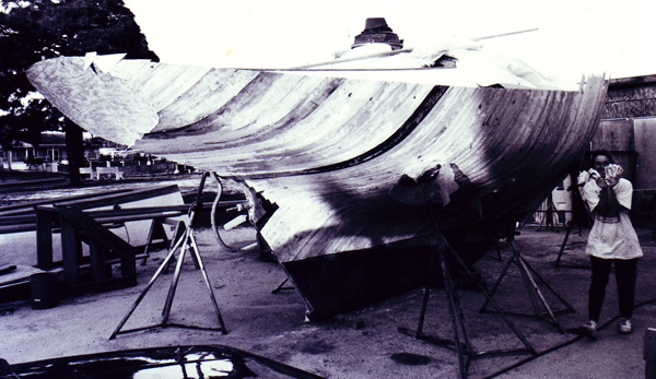 ![]() IMAGINE after sandblasting but prior to fairing, ready for cold-molded over-planking |