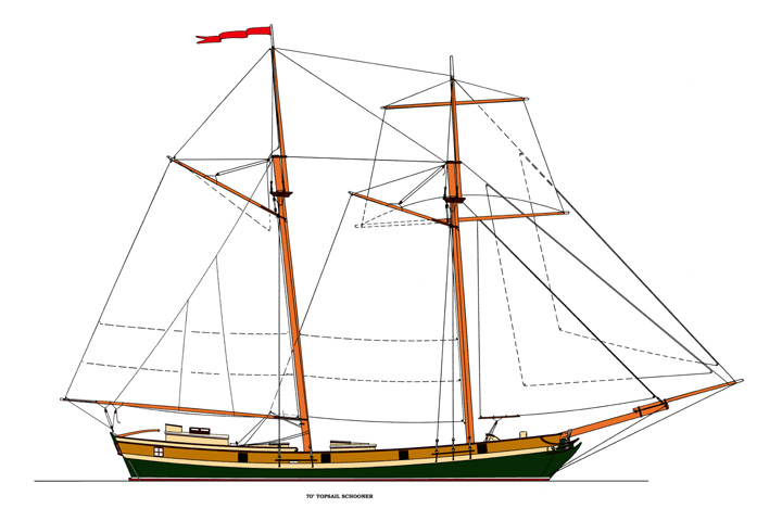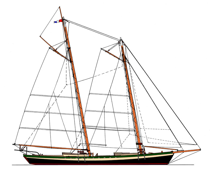 Bermudian Schooner 65 Designed for a charter company but never built; there is a yacht version and a passenger-carrying version; also a boomed sail plan that is self-tending |
