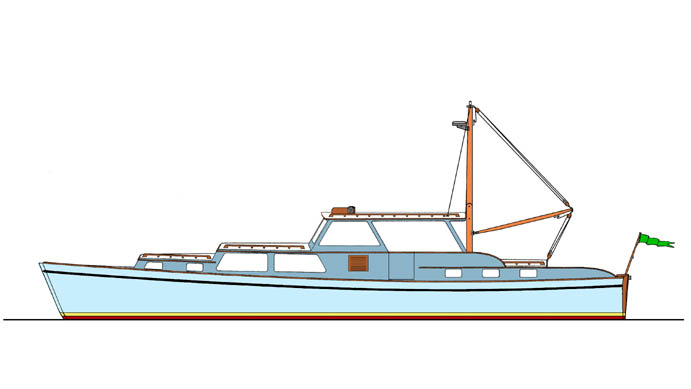 There is also a Stays'l schooner-rigged Motorsailer 45 Both models can be built in cold-molded lapstrake construction or two other cold-molded methods Speed-projections indicate that this vessel will cruise at 12 kts burning 2gph |