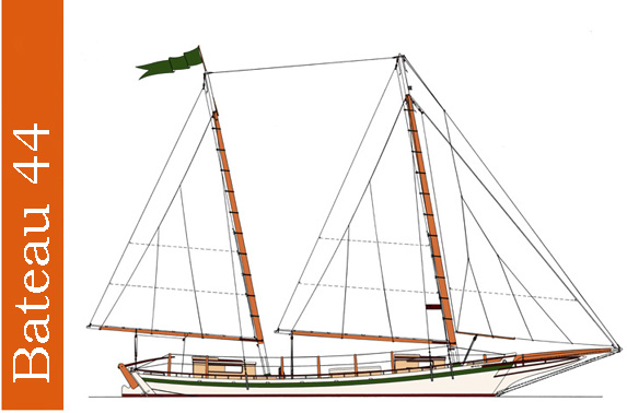 TYPE Three‑sail bateau. Diesel auxiliary 22 passenger charter boat for